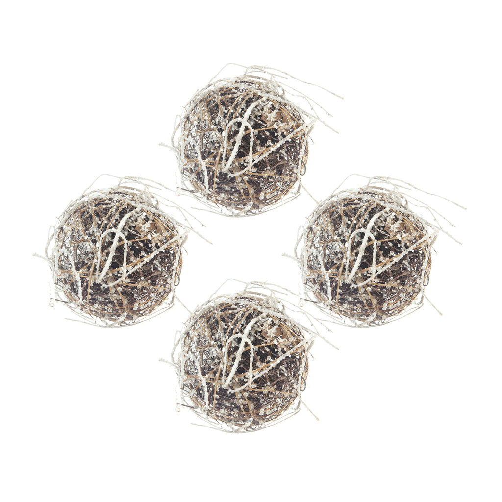 D6' Iced Twig Ball, Decorative Hanging Ball Christmas Tree Ornaments for Holiday Party Decorations, Set of 4