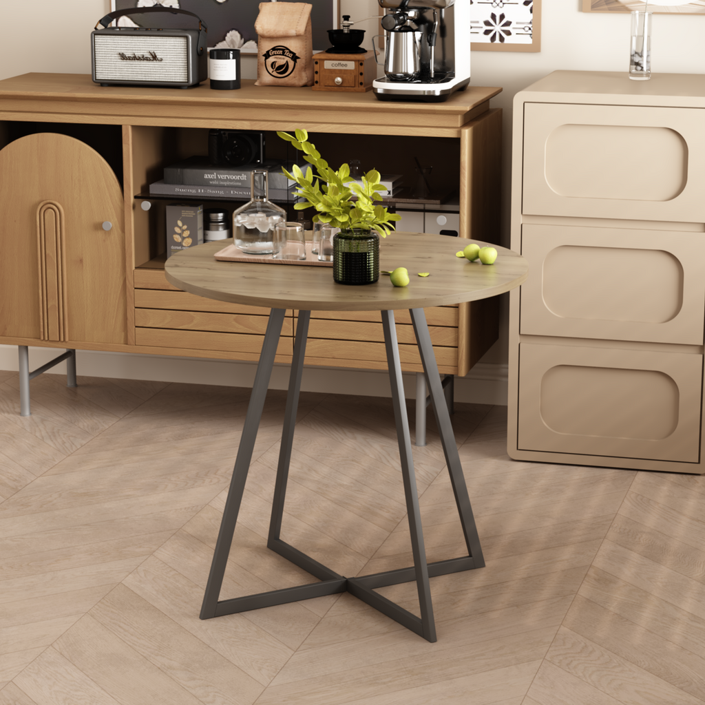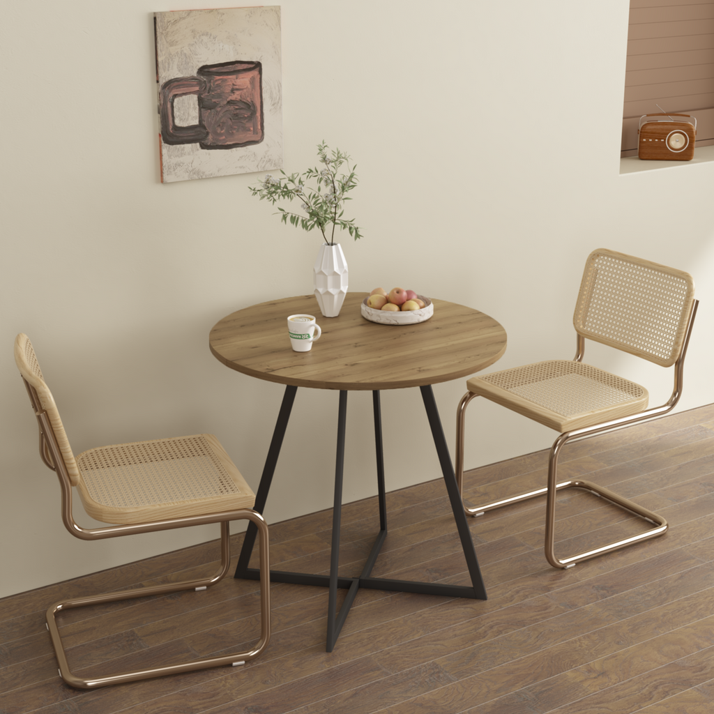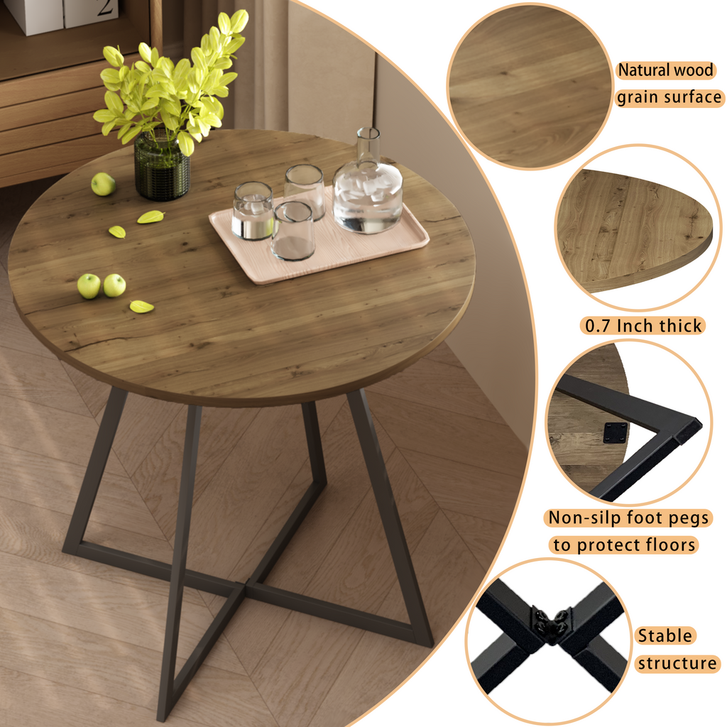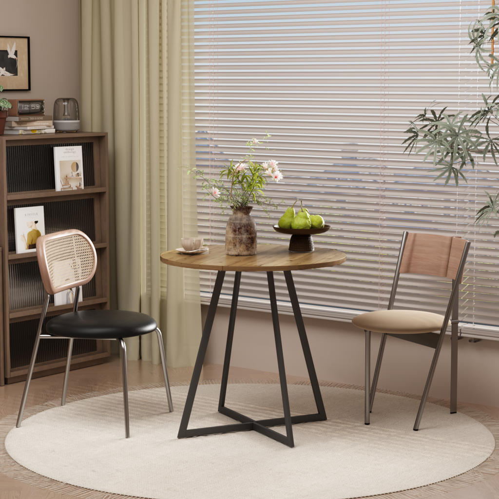 • • Sturdy and Stable ConstructionThe solid metal leg structure provides reliable stability and everyday durability, while the round tabletop offers a smooth and safe surface for dining, coffee, or casual gatherings.