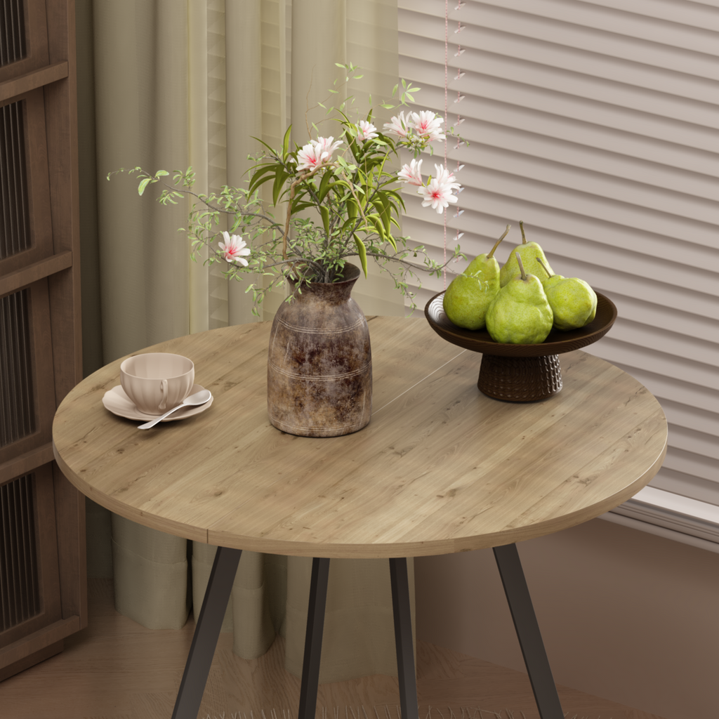 • • Multi-Purpose UseDesigned for versatility, this round table works perfectly as a dining table, breakfast table, coffee table, or small meeting table for kitchens, living rooms, cafes, or home offices.