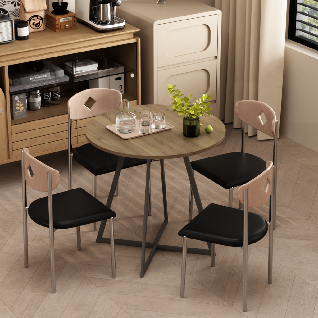 • • Perfect Size for Small SpacesWith an 31.5 inch round tabletop, this dining table is ideal for small apartments, kitchens, breakfast nooks, or cozy dining areas, comfortably seating 4 people without taking up too much space.