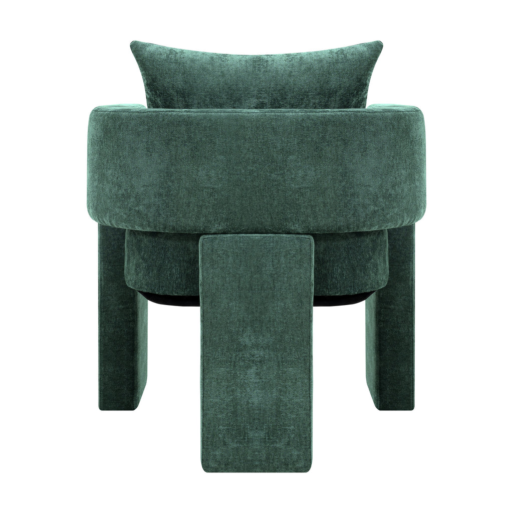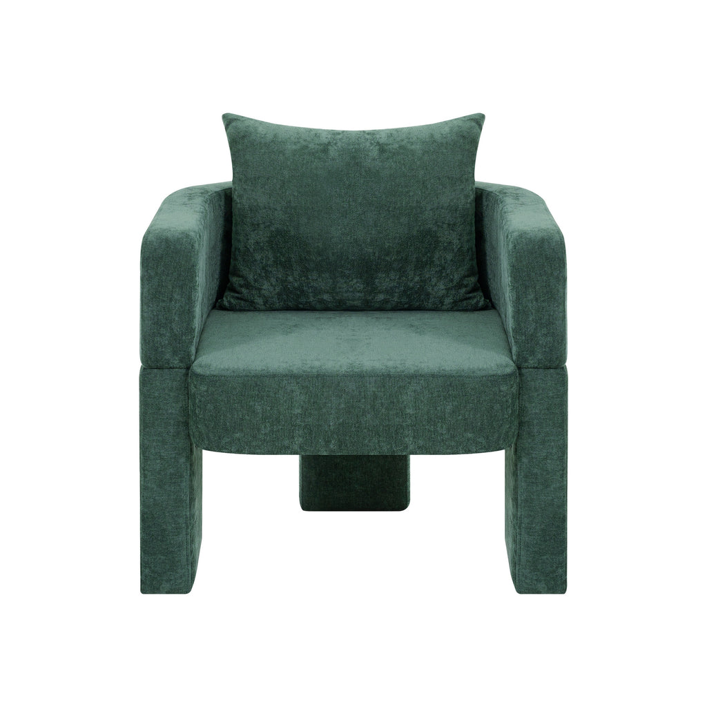 Modern 3-Leg Chenille Accent Chair with Ergonomic Arms & Removable Pillow, Plush Small Space Armchair, Single Sofa Chair for Living Room, Bedroom, Dining Room and Office, Dark Green