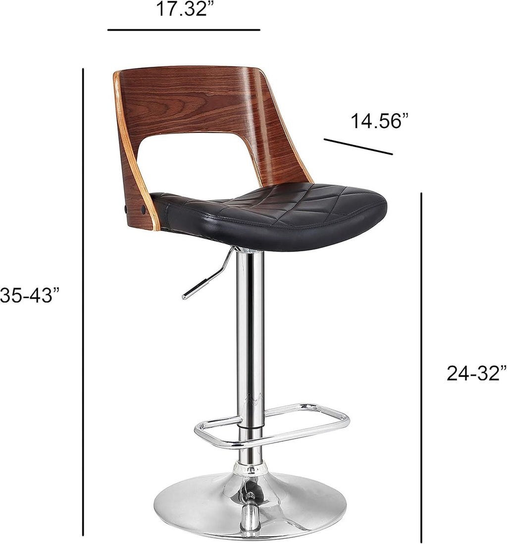 Bentwood Contemporary Modern Stylish Wood Back Adjustable Swivel Bar Stool with Diamond Quilted Finish Curved Seat and Back