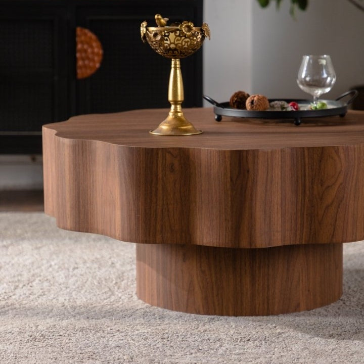 31.5' Irregular Edge Walnut Coffee Table – Modern MDF Imitation Wood Grain Table for Living Room, Bedroom & Office (Sturdy, Easy Assembly)