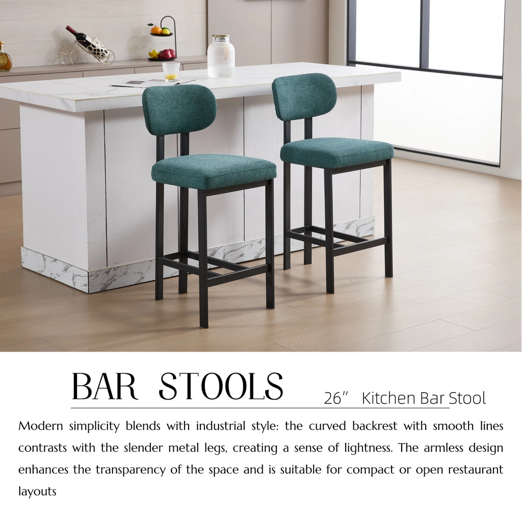 Bar Stools Set of 2, 26 inch Modern Upholstered Fabric Counter Height Barstools, Kitchen Island Chairs with Black Metal Legs for Dining Room/Kitchen Island/Bar