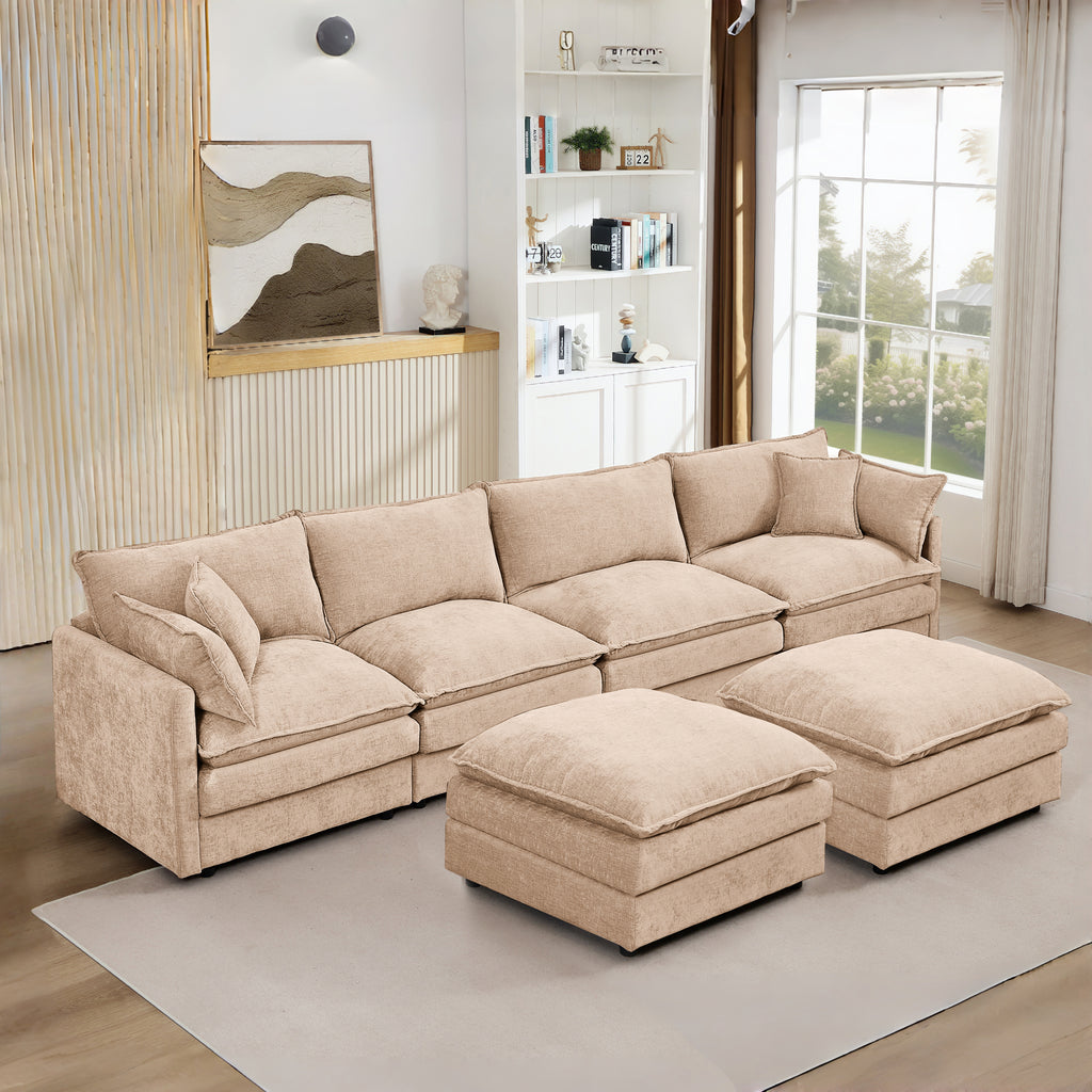 Modular Sectional Sofa, 130.7 Inch U Shaped Couch Set for Living Room, 4-Seater Comfy Cloud Couches with Movable Ottoman, DIY Combination, Chenille, Coffee