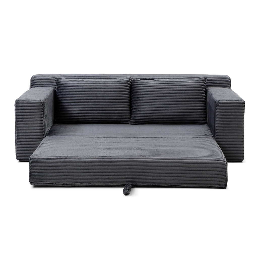 Memory Foam Cloud Loveseat Sofa, 2 in 1 Convertible Folding Couch Bed, No Assembly Compressed Corduroy Floor Lounge Sofa for Apartment Office Bedroom Living Room