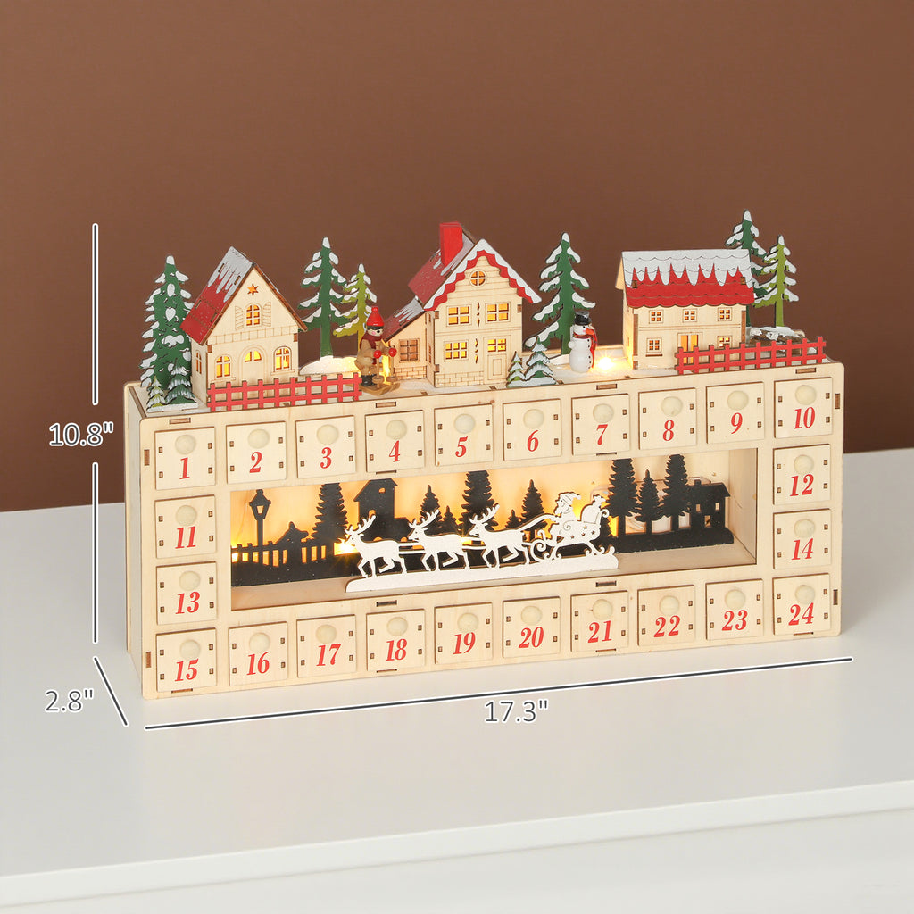 Christmas Advent Calendar with 24 Countdown Drawers and LED Lights