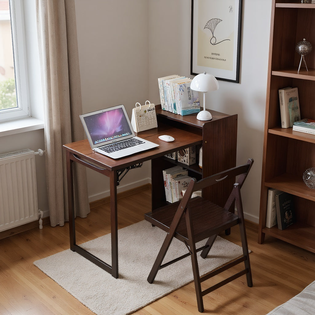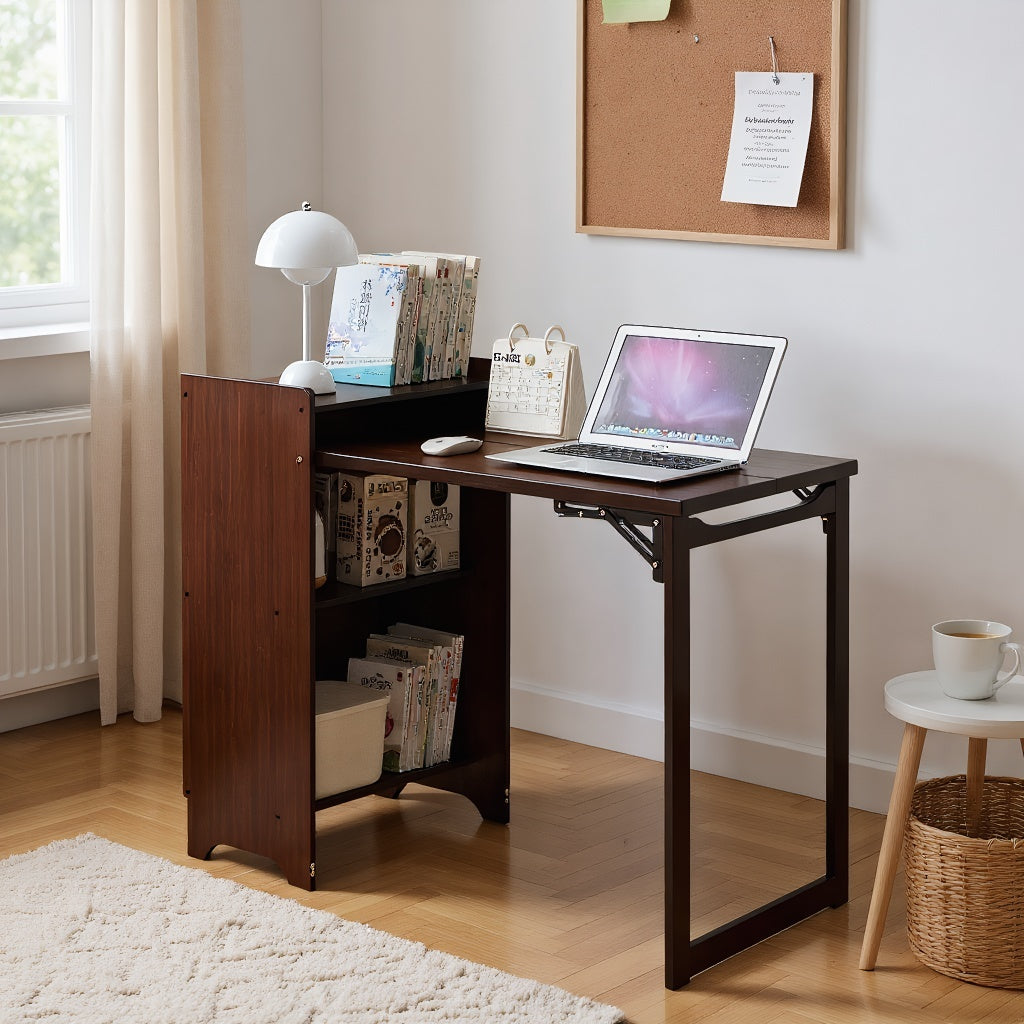 • Ample Storage: The bamboo folding desk has a spacious top for lamps, phones, and essentials, plus shelves to store books and other items for a clutter-free workspace.
