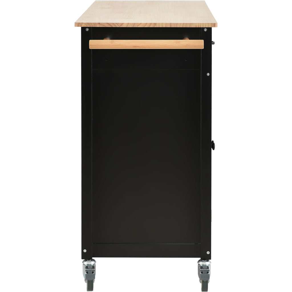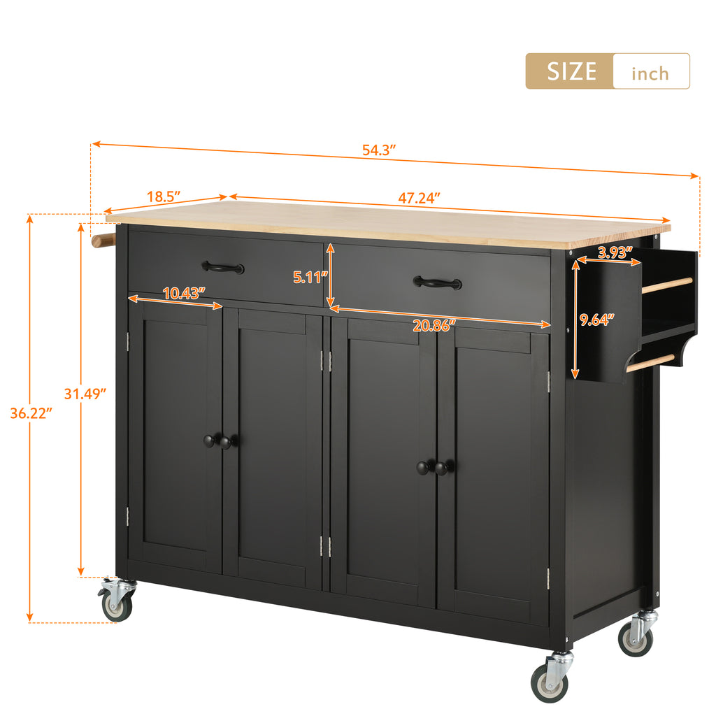Kitchen Island Cart with Solid Wood Top and Locking Wheels,54.3 Inch Width,4 Door Cabinet and Two Drawers,Spice Rack, Towel Rack (Black)