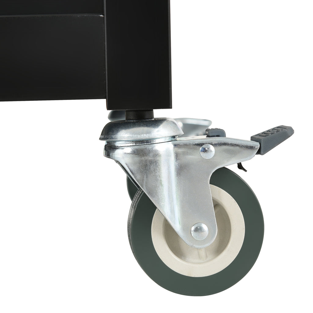 • - [TWO LOCKING WHEELS] The two locking wheels ensure stability and mobility, allowing you to move the cart around your kitchen as needed while keeping it securely in place.