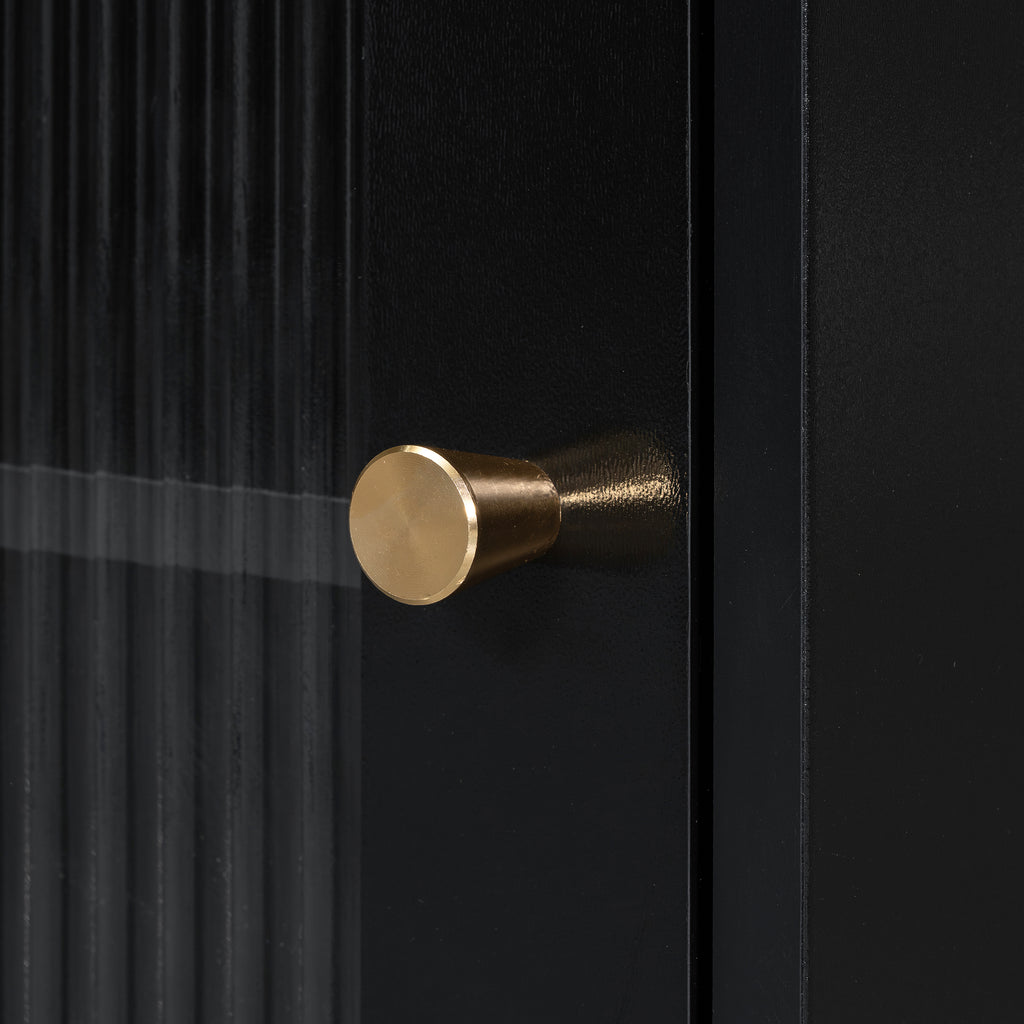 The canbinet door is equipped with semi-transparent striped glass, it obscures clutter while letting light through.
