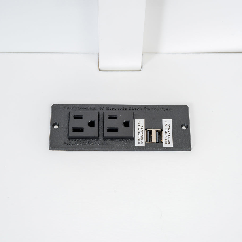 - [Built-in Charging Station] There's also a built-in USB and socket on the storage shelf, so you can put your phone in to charge without taking up other space.