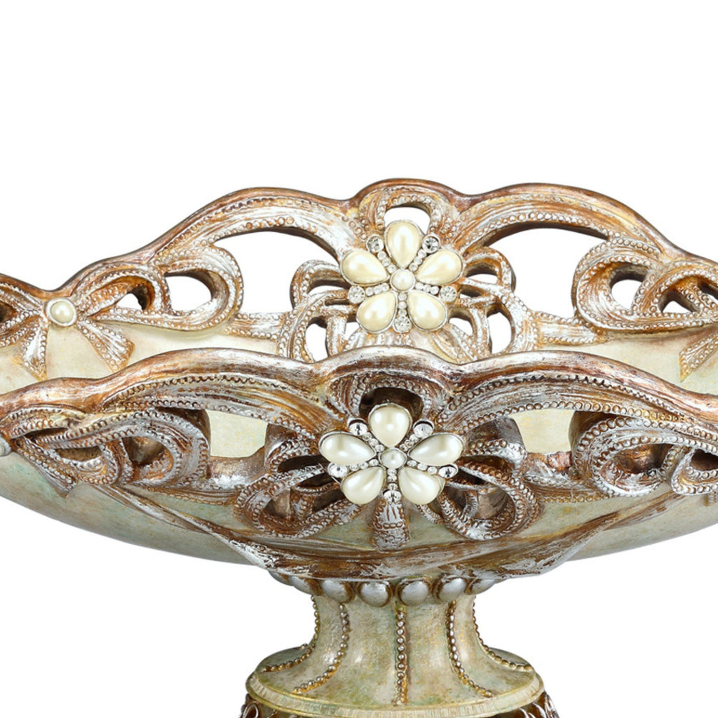 9' Tall Polyresin Decorative Fruit Bowl, Vintage Rose Design