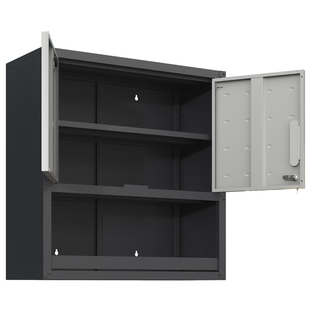 Metal Wall-Mounted Tool Storage Cabinet with Locking Door, 1 Shelf, Black and Gray, Metal, 29.5 x 11.8 x 30.3 inches