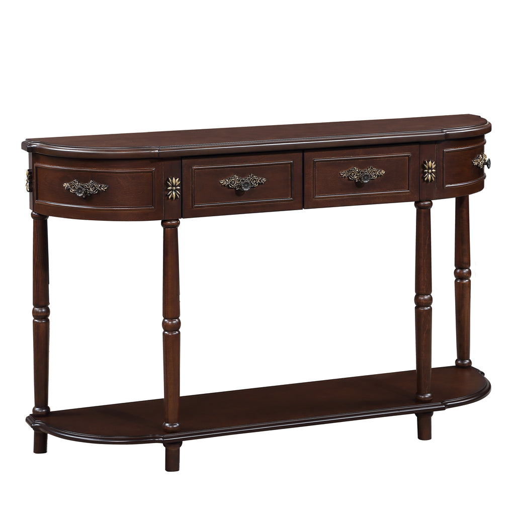 • 【Retro Style Console Table】:Our console table is retro style. The 4 Roman legs and the intricate carvings on the drawers give this table a classical-elegant charm that adds a touch of luxury to your room. You can use it as a commodity shelf to support daily essentials. You can also use it as a sofa table or a graceful book case to store books or magazines in hallway, entryway, bedroom, living room.