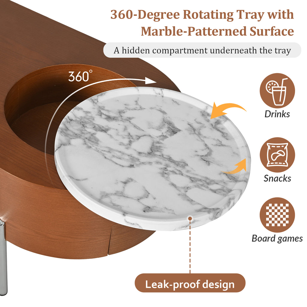 360-Degree Rotating Tray with Marble-Patterned Sur
