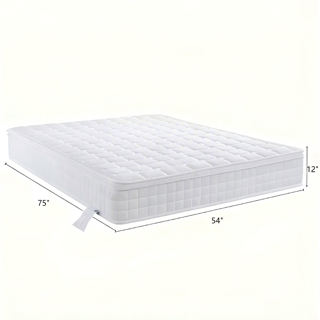 Full Mattress, 12 Inch Innerspring Hybrid with Gel Foam for Motion Isolation, Pressure Relief & Edge Support, White, Foam+Spring, 75 x 54 x 12 Inches