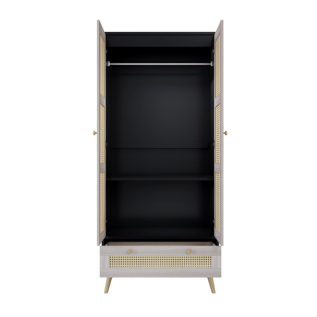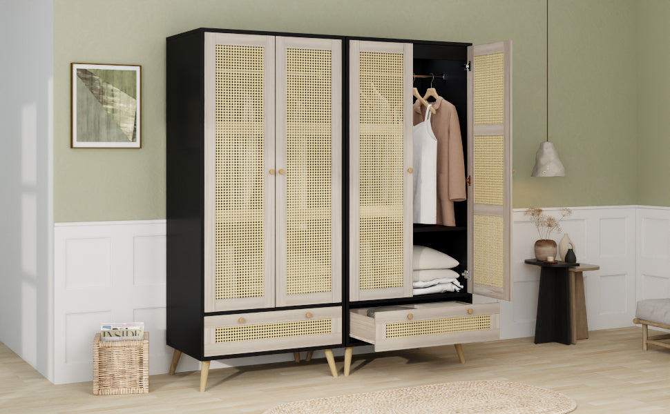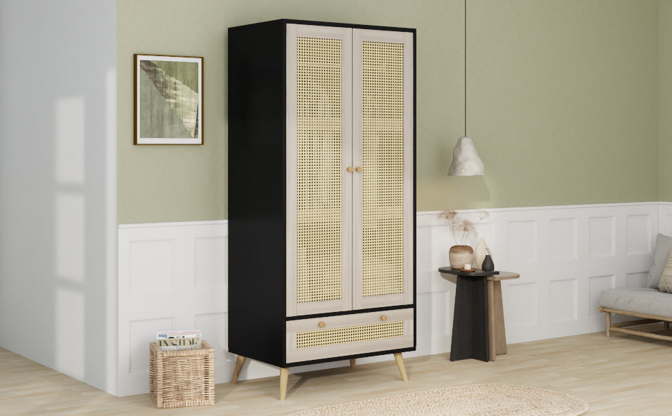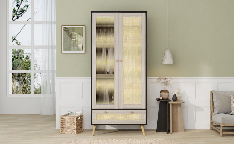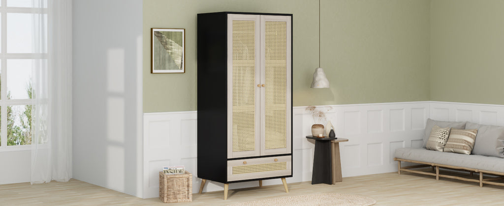 - [Stylish Rattan Design] – The Tic Tac Toe patterned rattan design on the doors adds a touch of retro charm to your space. This clean, geometric design brings a natural, organic vibe to your room, making it both visually striking and minimalist.