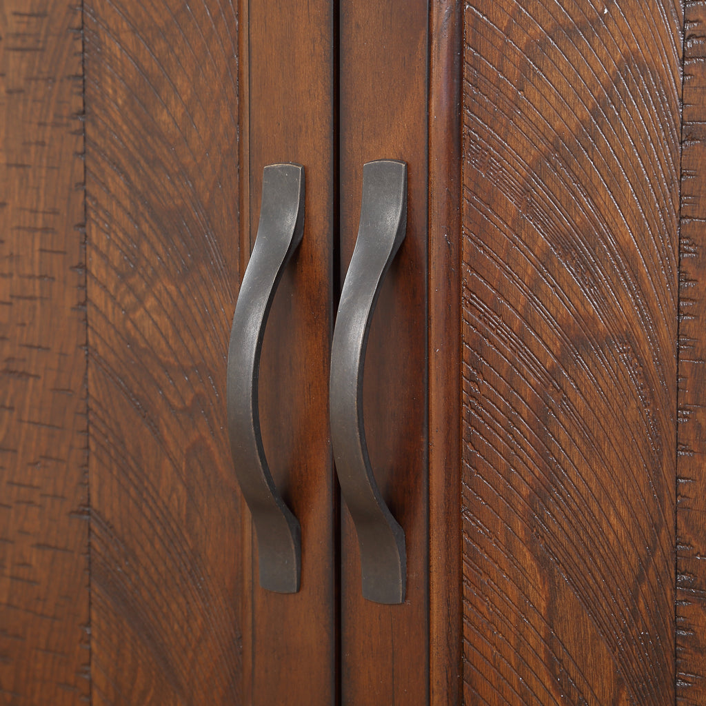 Two simple design zinc alloy handles is convenient to open the cabinet and also easy for daily clean. table top is made of MDF with veneer that increases the solid wood grain texture