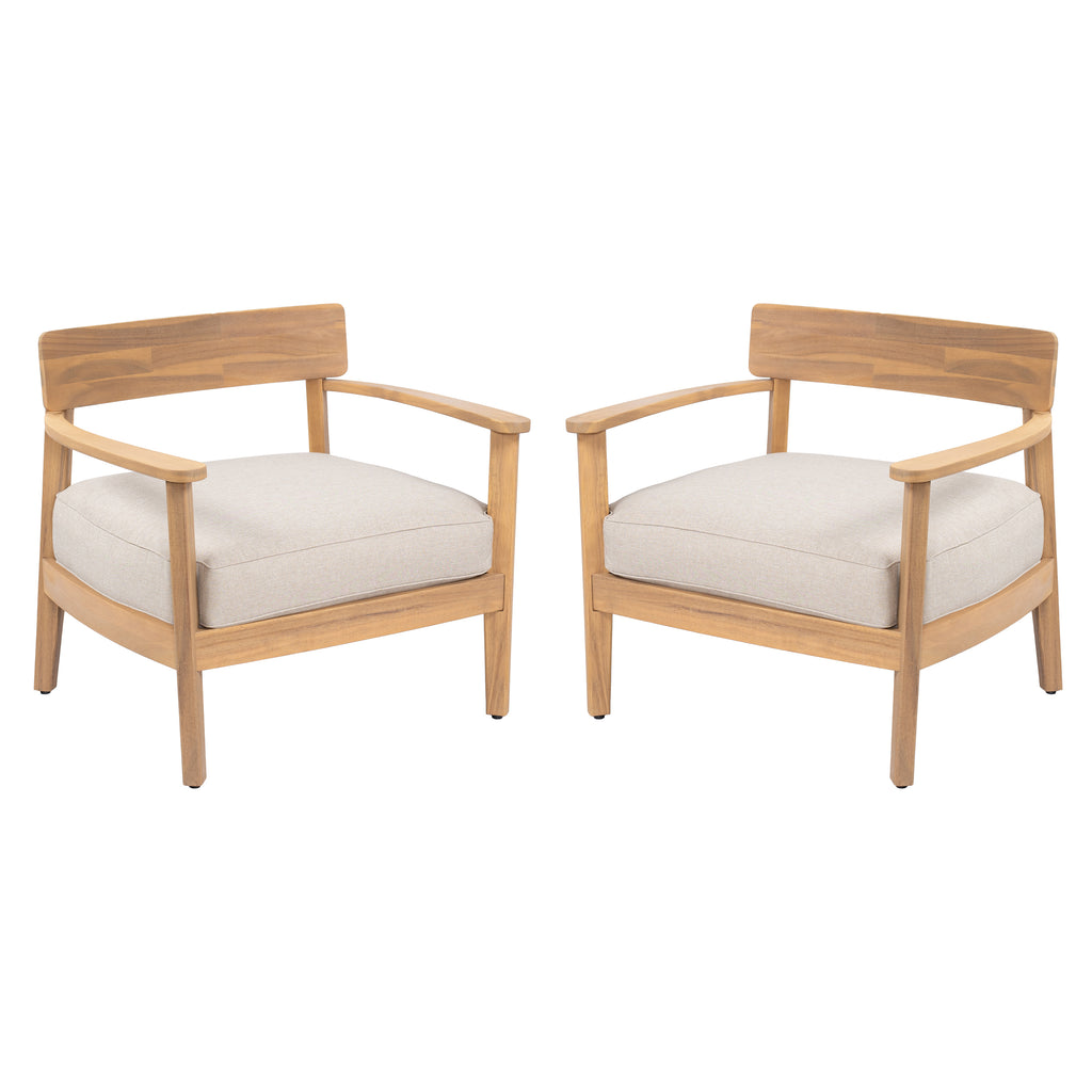 Mallorca Acacia Wood Club Chair With Seat Cushion, Set of 2