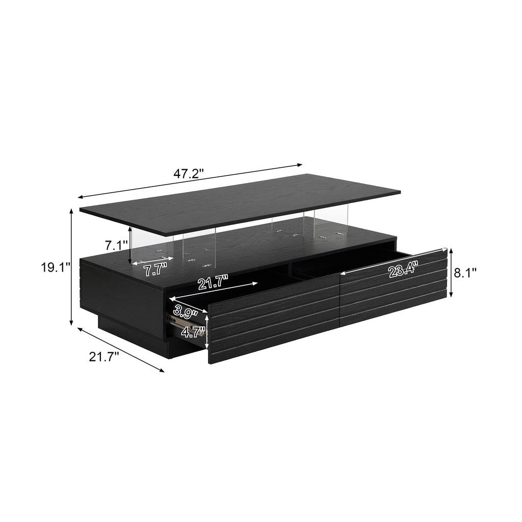 - Ample Storage Space: Equipped with two large drawers, this coffee table offers ample storage space to keep your living room organized. Perfect for storing remote controls, magazines, and other everyday essentials while maintaining a clutter-free surface.
