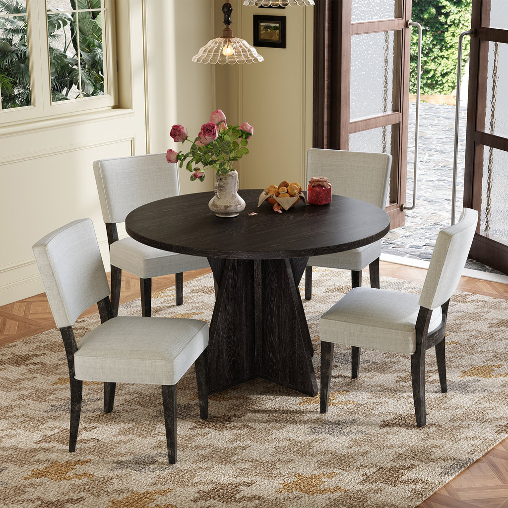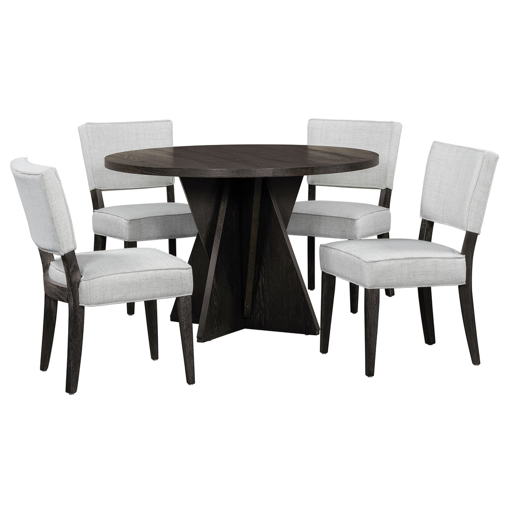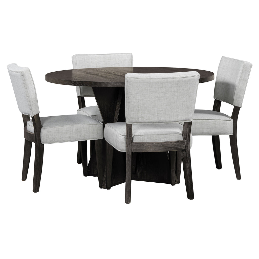 TREXM 5-Piece Round Dining Table Set for 4, Retro Kitchen Table and Chairs Set of 4 with Designed Base, Wood Dining Table with 4 Upholstered Chairs for Small Space and Dining Room (Espresso)