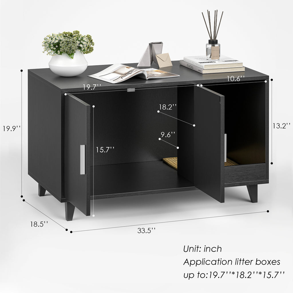 • PRODUCTS DIMENSIONS: Overall size 33.5'L x 18.5'D x 19.9'H, Entrance size 11.0' W x 13.2' H, More size information can refer to the image.The inner compartment fits most litter boxes