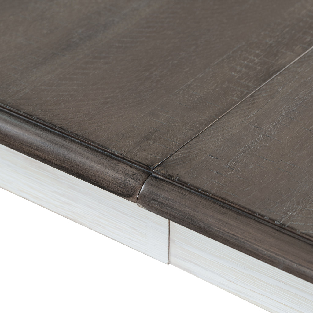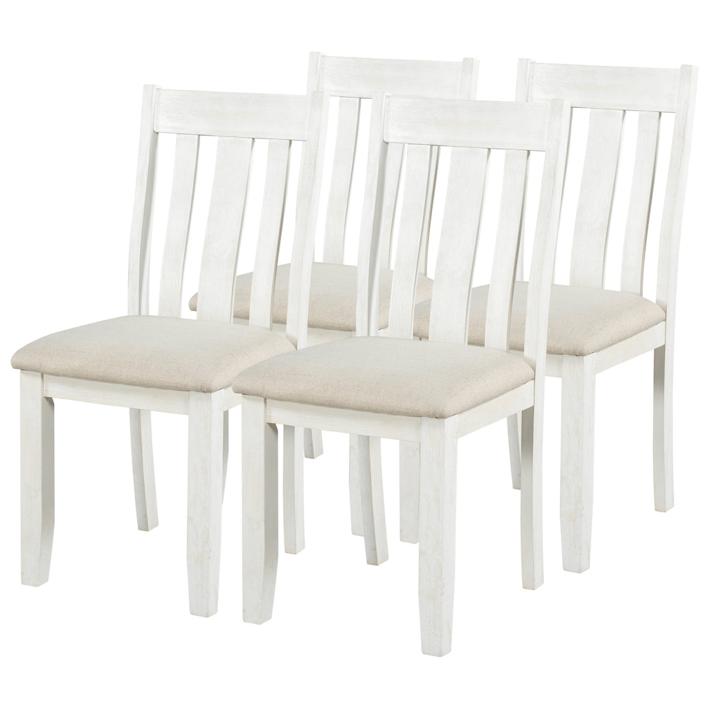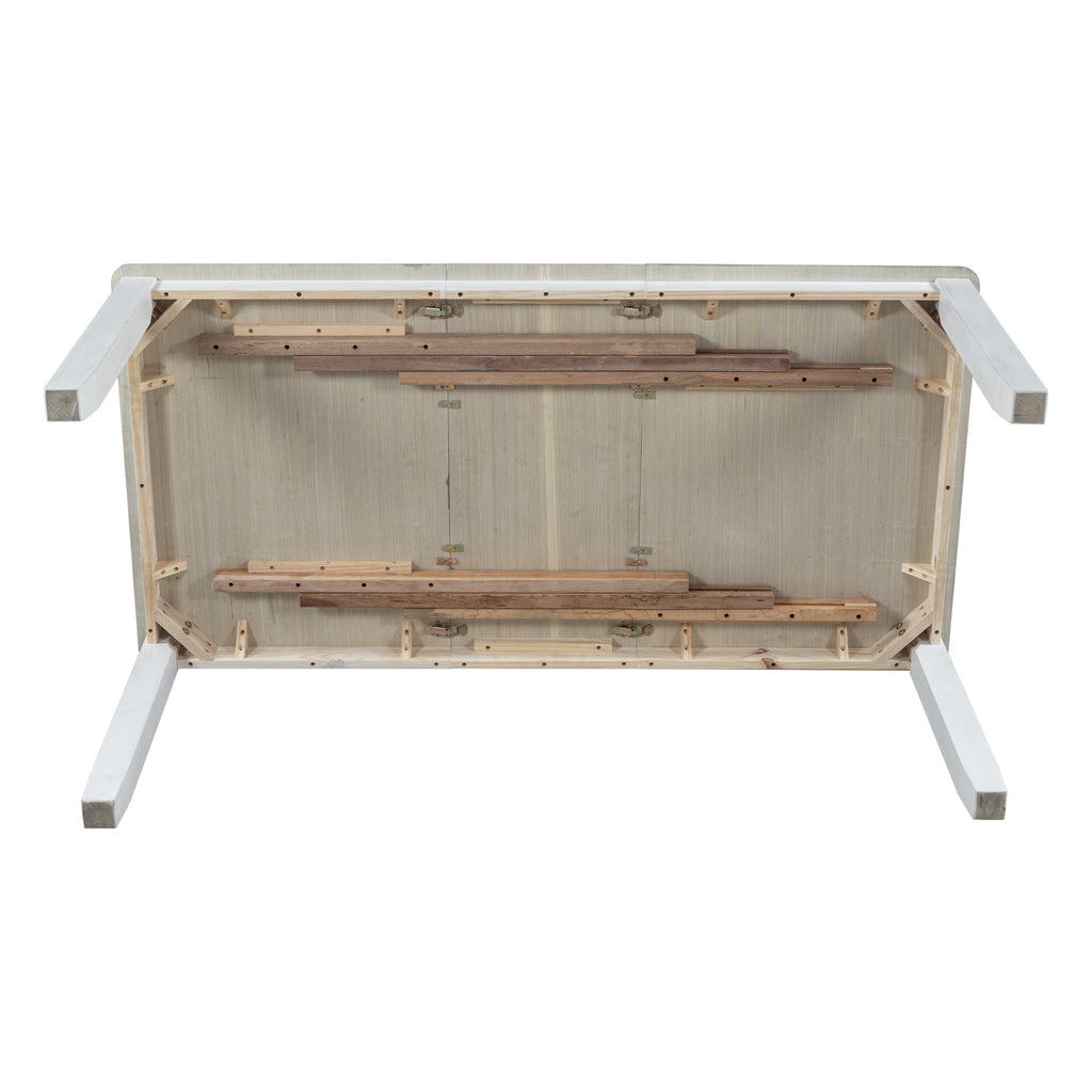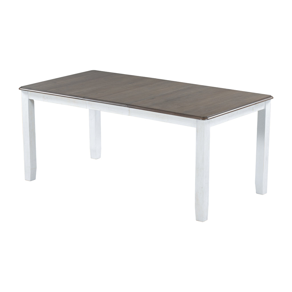 - This antique wooden extended dining table set looks simpler and more delicate. This beautiful piece adopts distressed finish design and elegant curves, and looks clever and sophisticated. The tabletop is built on 4 stable solid wood legs, with a removable leaf, so you can adjust the size of it to accommodate your space. A sturdy rubber wood and pine structure guarantees the service life and style of your home.