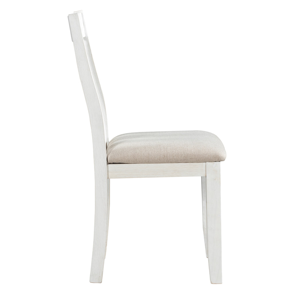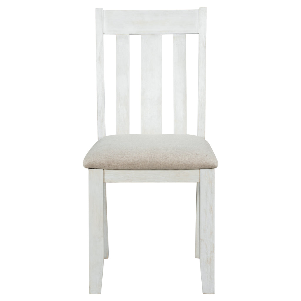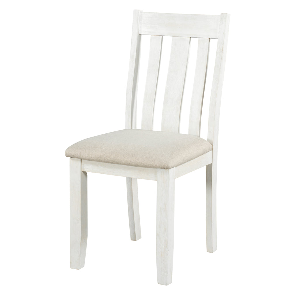 - The back of the chair is ergonomically designed, with just the right curve to support your back.With comfort in mind, the chairs are equipped with linen upholstered to provide you with a comfortable use while dining and working. The table top is made of acacia veneer, and wood scoring is increased, which is very beautiful with the brown finish.The white legs of the table and chair are matched with brushed effect, which makes it look smoother.