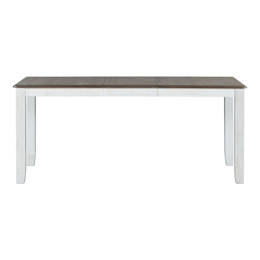 This antique wooden extended dining table set looks simpler and more delicate. This beautiful piece adopts distressed finish design and elegant curves, and looks clever and sophisticated. The tabletop is built on 4 stable solid wood legs, with a removable leaf, so you can adjust the size of it to accommodate your space. A sturdy rubber wood and pine structure guarantees the service life and style of your home.