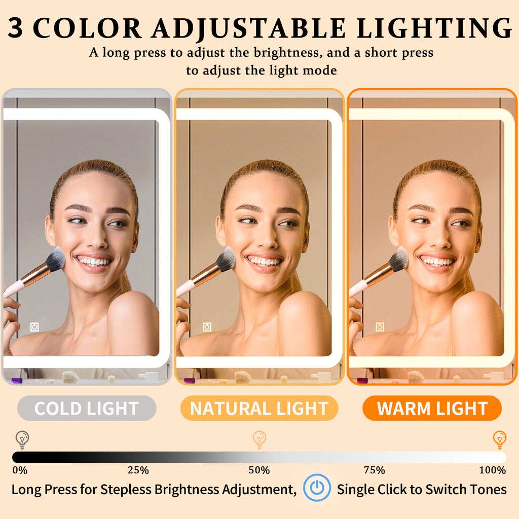 • Adjustable Led Lighting: This Vanity Includes Three-Color Adjustable Led Lighting, Allowing You To Customize The Light Color And Brightness According To Your Needs For Different Makeup Requirements.