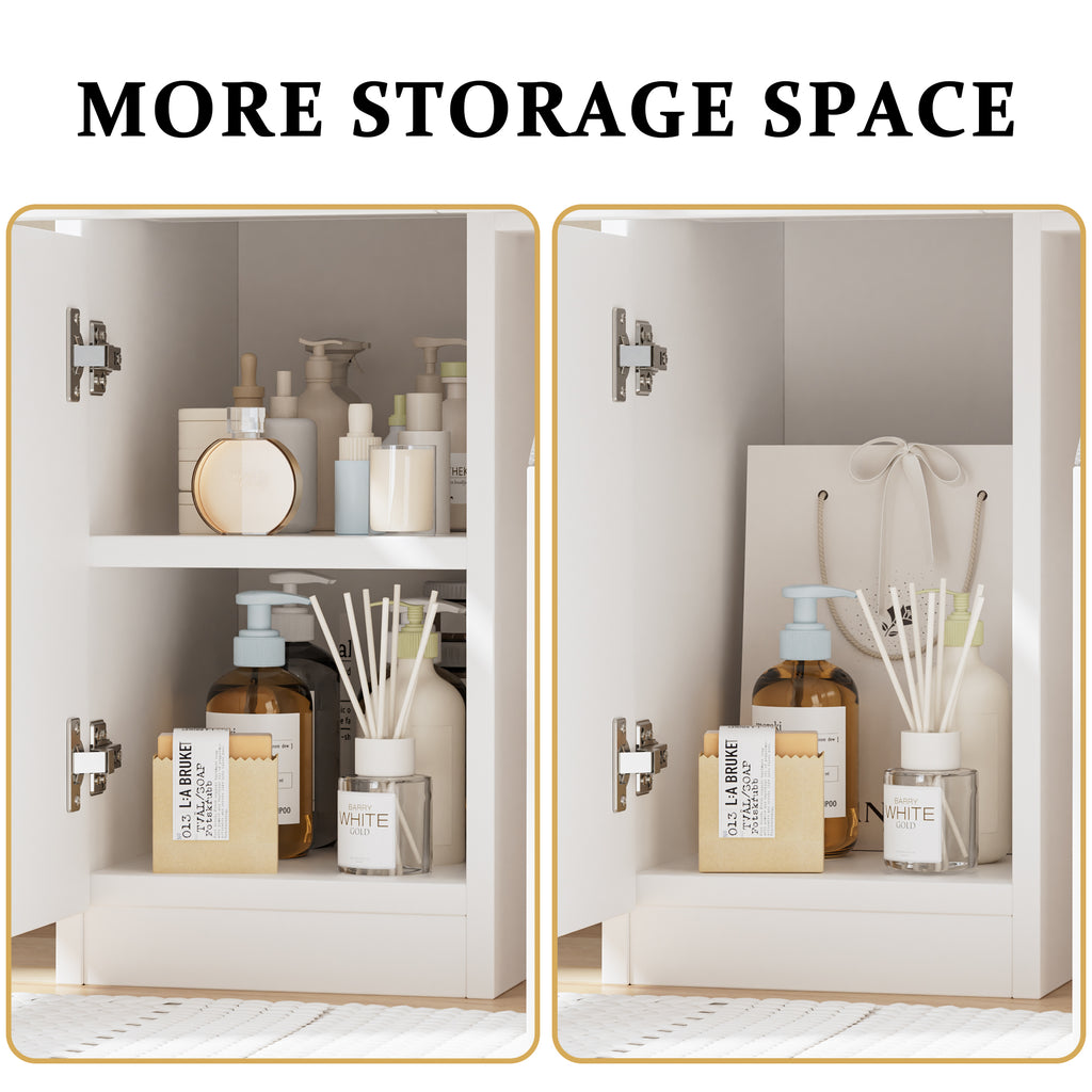 • Spacious Storage: The Mirror Is Adjustable And Features A Hidden Storage Shelf Behind It. Additionally, It Comes With An Open Storage Shelf, One Large Drawer, And one Small Drawers, Helping You Organize Your Items And Keep Your Space Tidy.