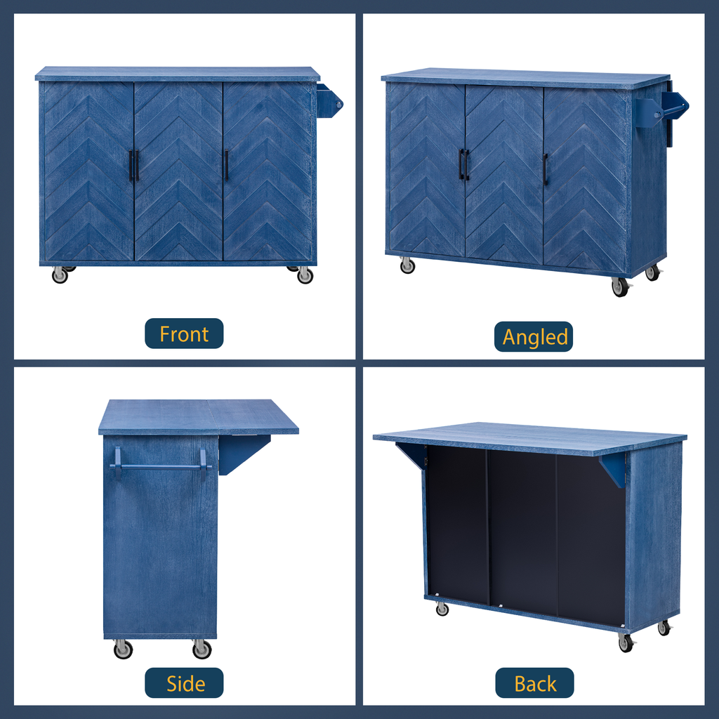Highlights | [Large Drop Leaf][2 x Internal Storage Racks][Adjustable Shelf] [Stuning 3D Wave Stripes Door Design][Towel Rack] [0.98inch Thick Counter Top][Ash Veneer Cabinet] [Cover With Paint][4 * 360°Smooth Rotation Wheels ] [Stationary Storage Island][Hydraulic Hinge][Solid Pine Wood Feet] |