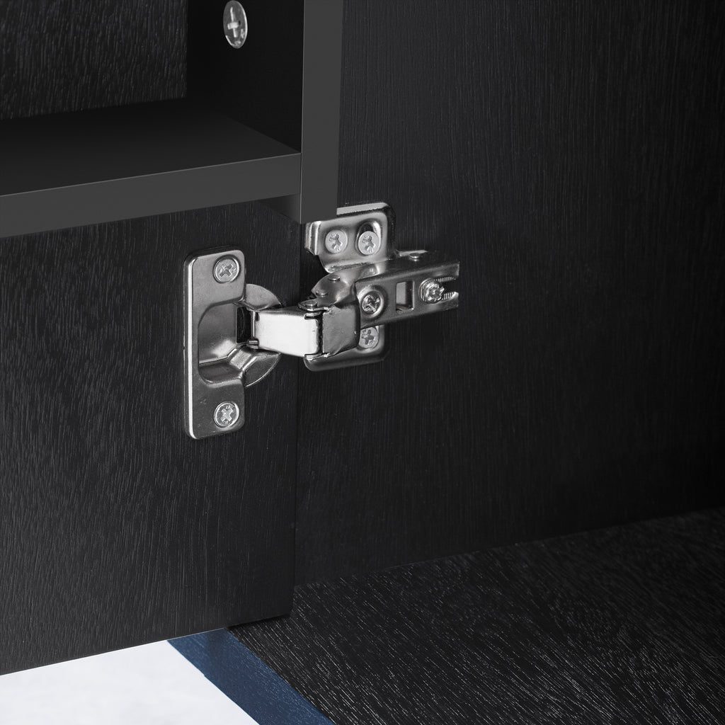 Height-adjustable shelves inside the cabinet doors provide flexibility in accommodating various kitchen items of different sizes.