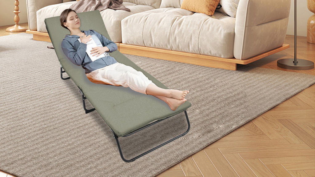 • Adjustable Comfort: Featuring 5 adjustable backrest positions and thick, soft cushions, this cot bed provides exceptional support and comfort, making it perfect for lounging, reading, or enjoying a restful night's sleep.