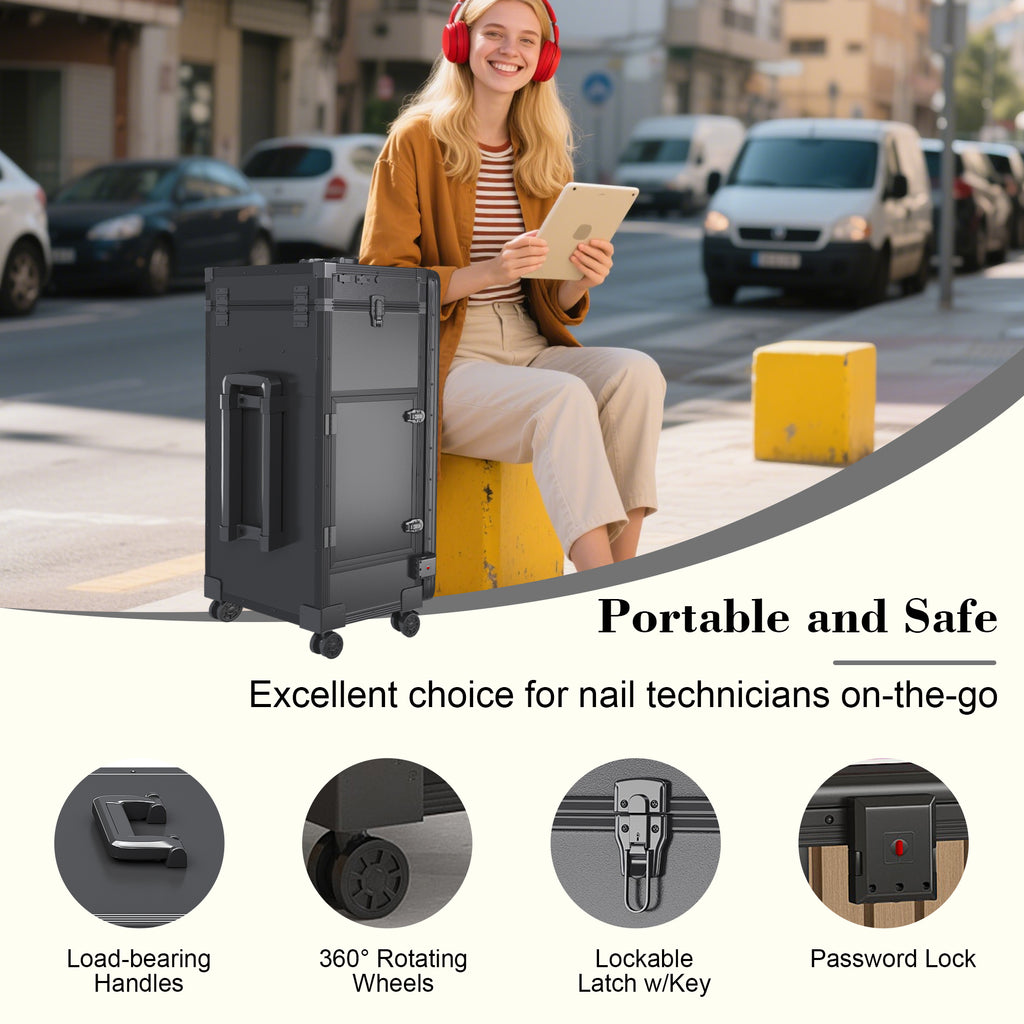 • MASSIVE STORAGE + TSA LOCKS – Three spacious drawers (with TSA-approved combination locks and backup keys) keep polishes, tools, and supplies secure yet easily accessible—no more clutter!