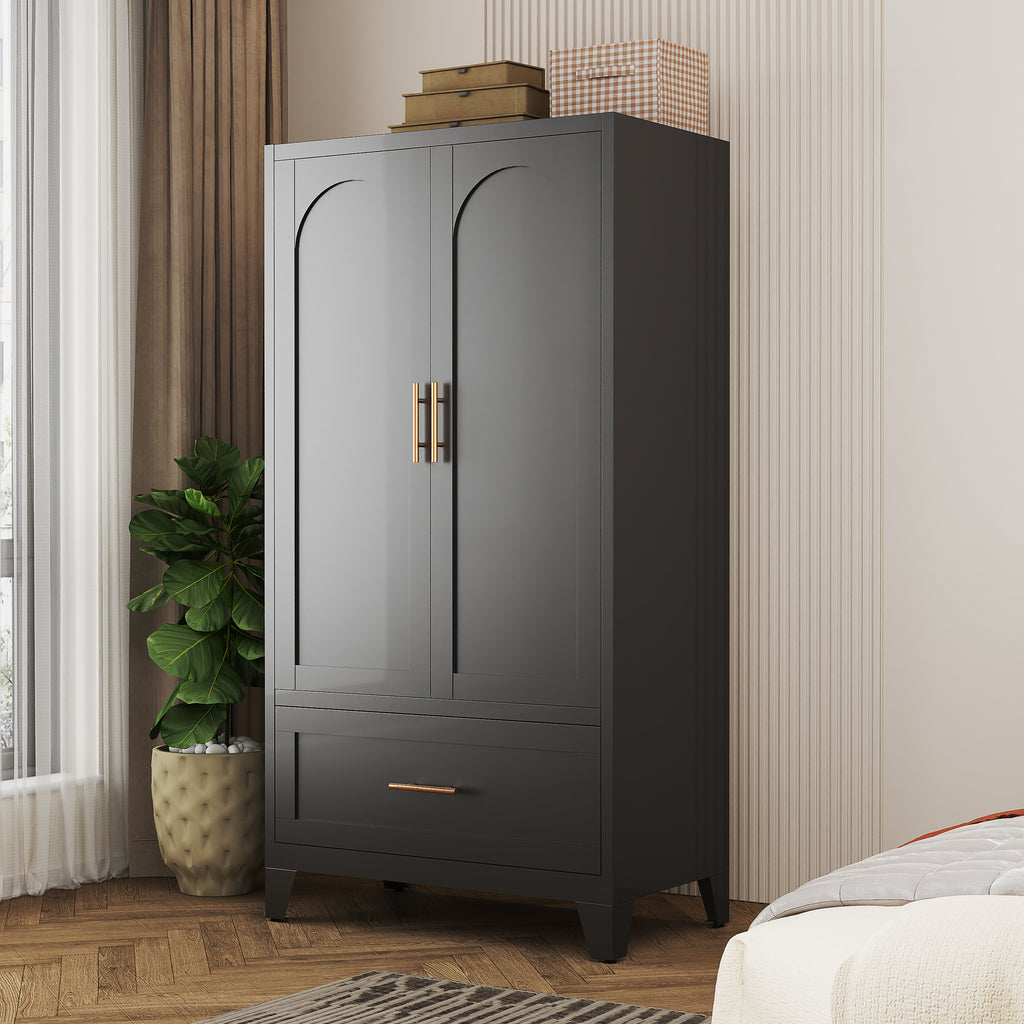 - 【Ample Storage Space】: Standing at 60 inches tall, this wardrobe boasts abundant storage capacity. It has one drawer for neatly storing smaller items like underwear and socks, and a hanging rod ideal for coats, dresses, and suits. It not only provides storage but also ensures efficient and tidy organization for both your daily essentials and seasonal belongings.