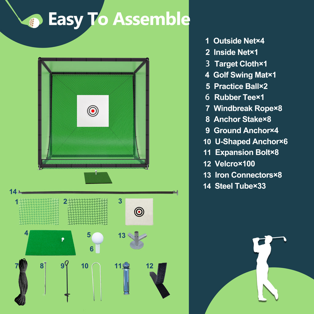 • 【Multi-Scene Use】Whether you are a beginner seeking to improve your skills or an experienced professional, our golf net cage is perfect for golfers of all skill levels. You can use it all year round in your backyard, garage, or even indoors.