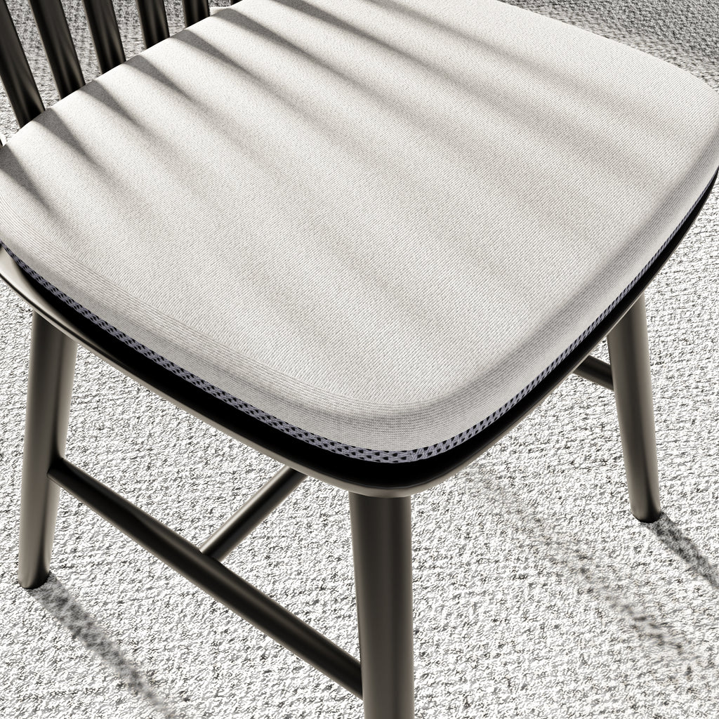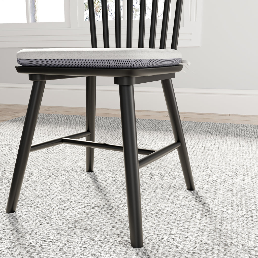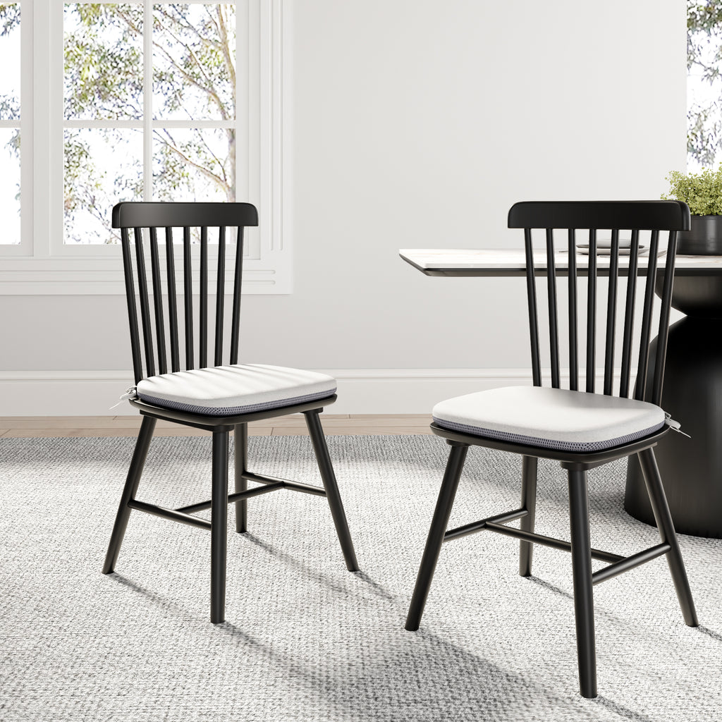 Farmhouse Kitchen Chairs (Pair) - Sturdy Solid Wood Construction with Cushioned Seats, Modern Windsor Back Design - Black