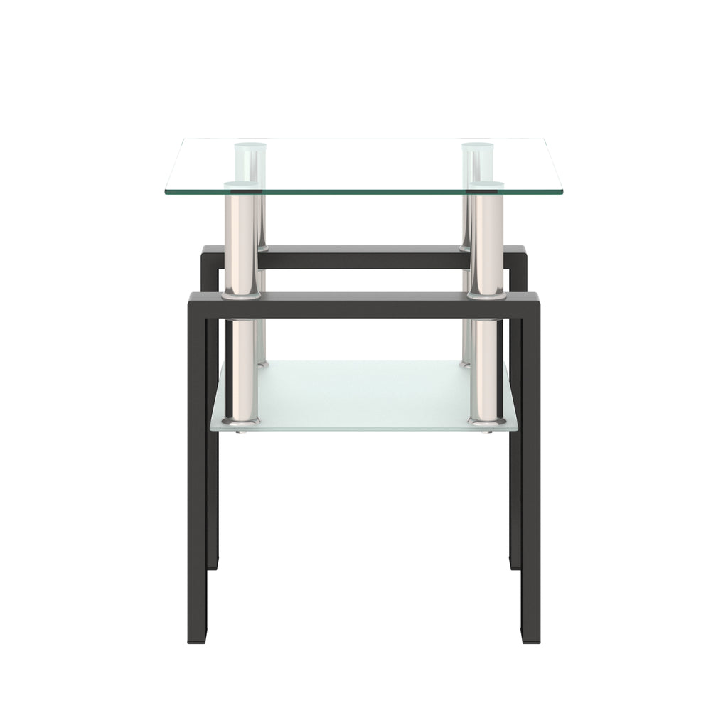Modern Tempered Glass Tea Table Coffee Table End Table, Transparent/Black, Metal Leg, 17.72 x 17.72 x 20.5 inches