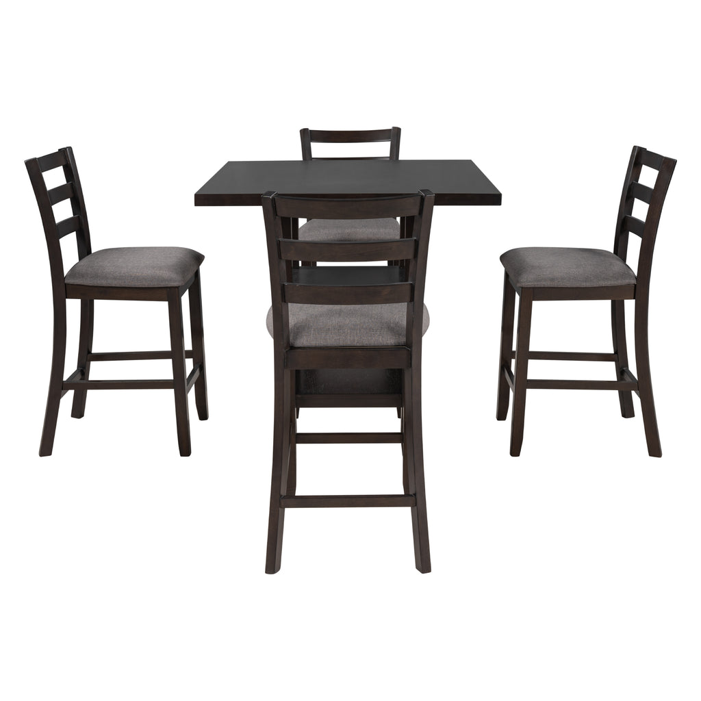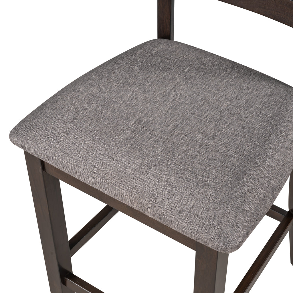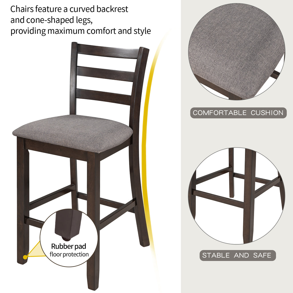 TREXM Wooden Counter Height Dining Set with Padded Chairs and Storage Shelving in Espresso Finish
