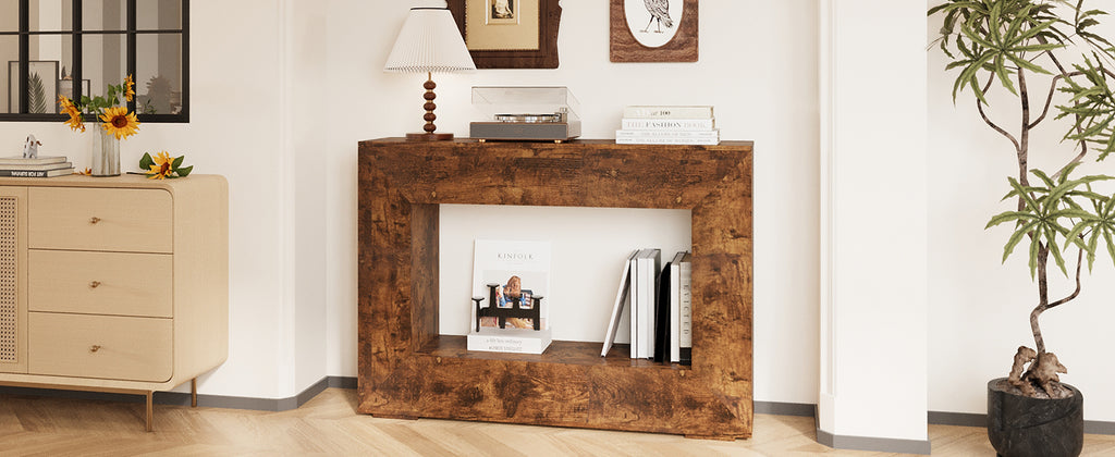 • CONSOLE TABLE WITH STORAGE: The console table measures 47.2'L x 11.8'D x 32.8'H. This entryway console table provides ample storage space for storing and displaying sundries and decorative items. You can use it to store lamps, magazines, or laundry baskets to keep your home neat and organized.