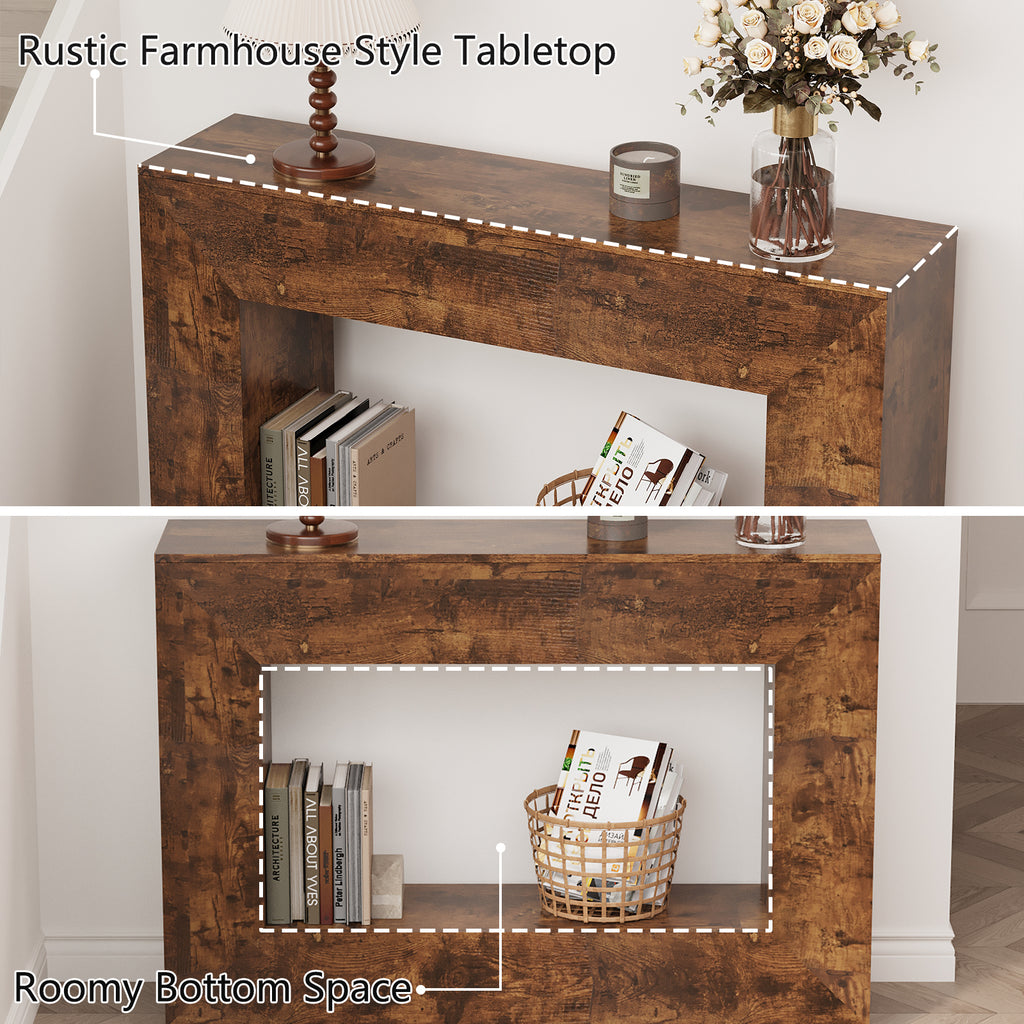 47' Farmhouse Console Table, Sofa Table Accent Table, Entryway Table with Storage, Narrow Entryway Table for Hallway, Living Room, Entrance, Foyer (Dark Brown)