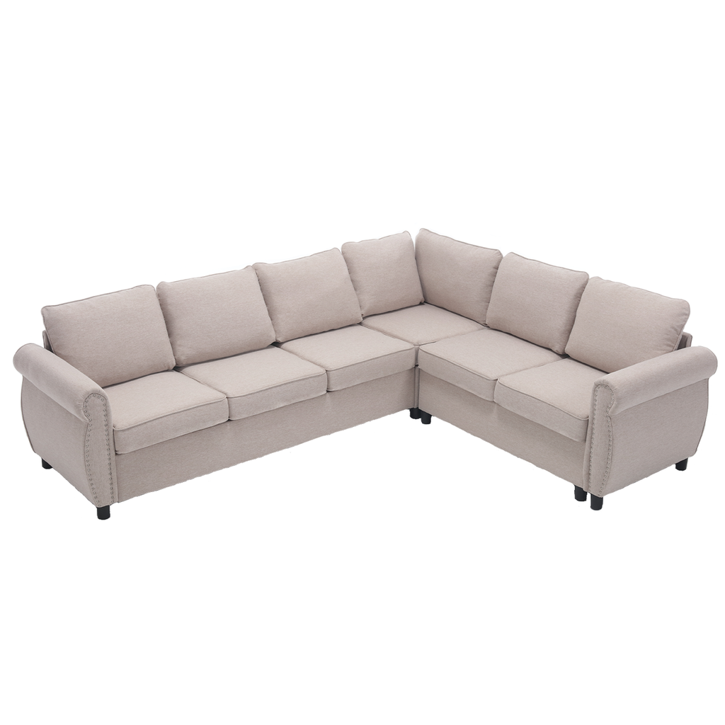 This sectional sofa is the perfect blend of size, style, and comfort. Measuring 104'D x 81'W x33'H, it's spacious enough to fit your entire family and provide ample seating for all your guests. The L-shaped design allows you to pull out the loveseats part in the middle to form a bed, increasing the space utilization of your living room. The sofa is made of high-quality materials including a sturdy wooden frame, metal legs, and soft polyester upholstery fabric. The seating experience is enhanced with spring packs, high-density sponge, and removable backrest cushions.