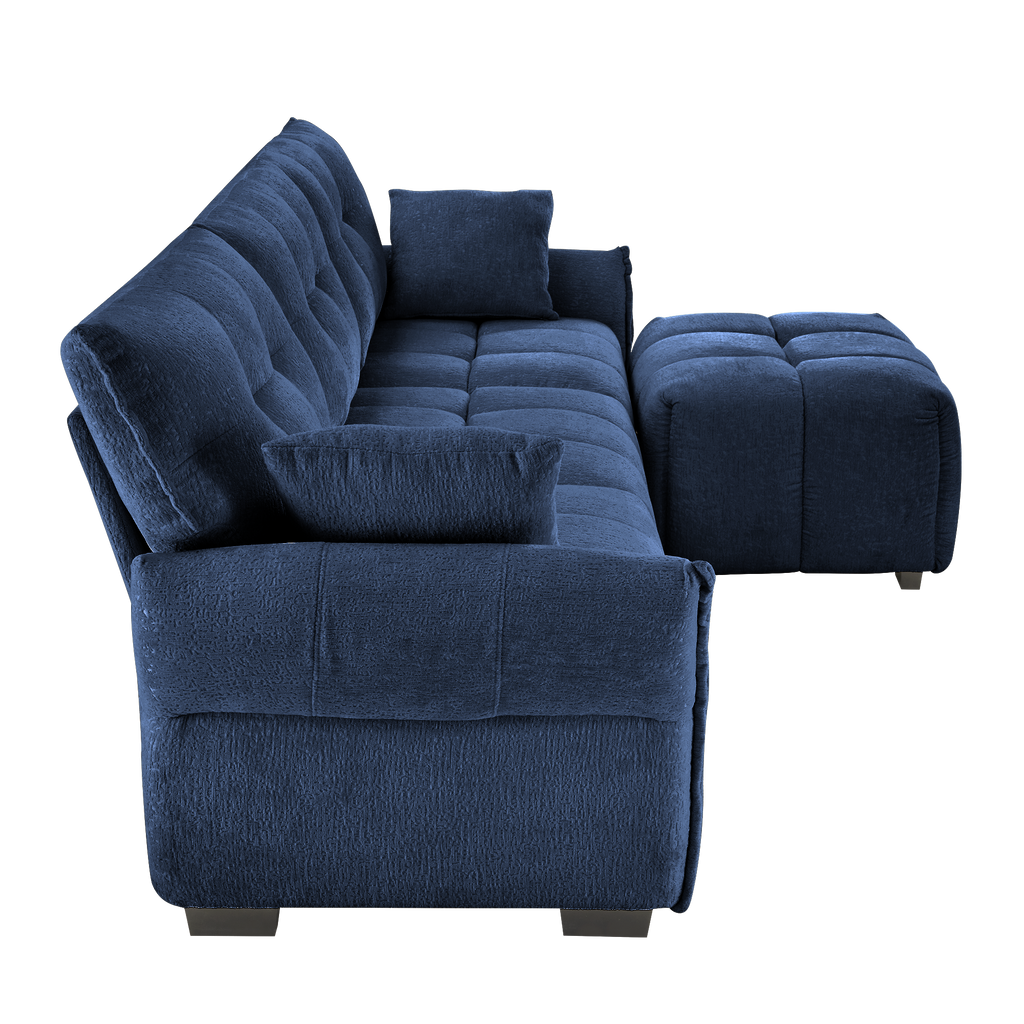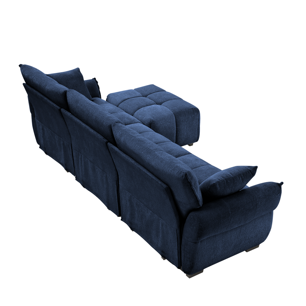 Elegant Blue Three-Seater Sofa Set with Ottoman and Pillows, Solid Wood, Textured Chenille, High-Resilience Cushions