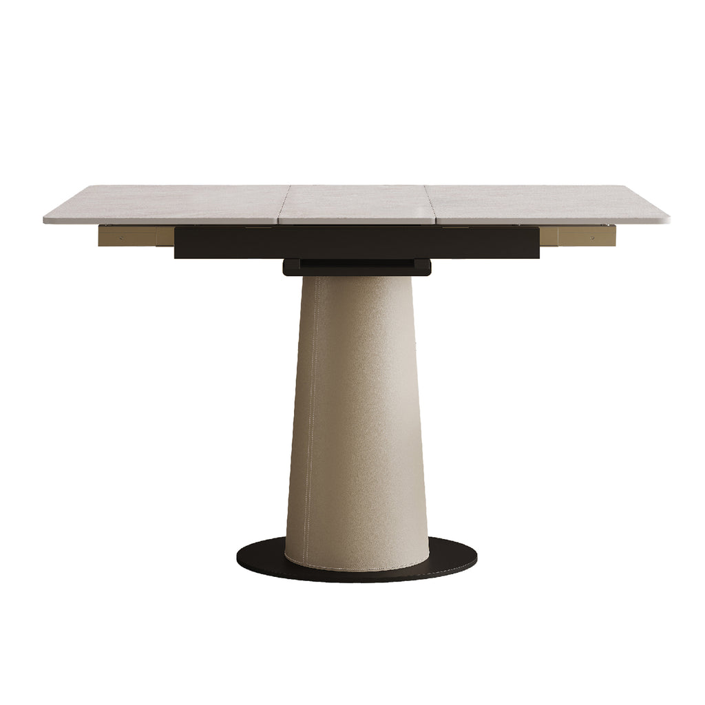 Retractable Rock Slab Folding Dining Table, Modern Square Expandable Table with Leather-Wrapped Stainless Steel Base, Dual-Purpose Space Saving Kitchen Table for Small Apartments
