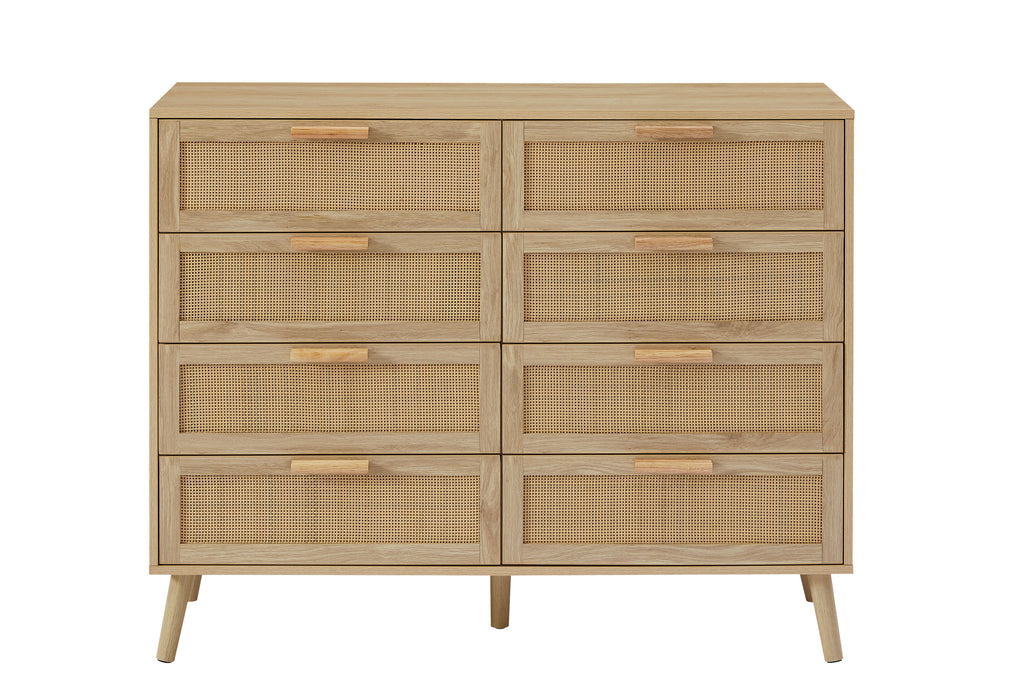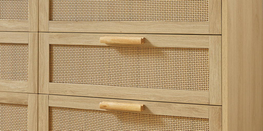 - Bedroom dresser made of durable engineered wood and natural rattan weave for long-lasting, scratch-resistant use. The cabinet has 5 supporting legs for good force, stable and balanced without shaking, and is equipped with an anti-tip device to avoid the risk of tipping and make it safer.
