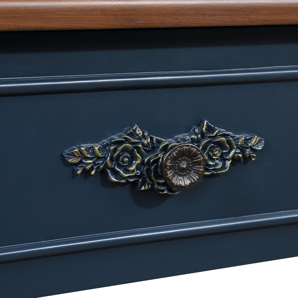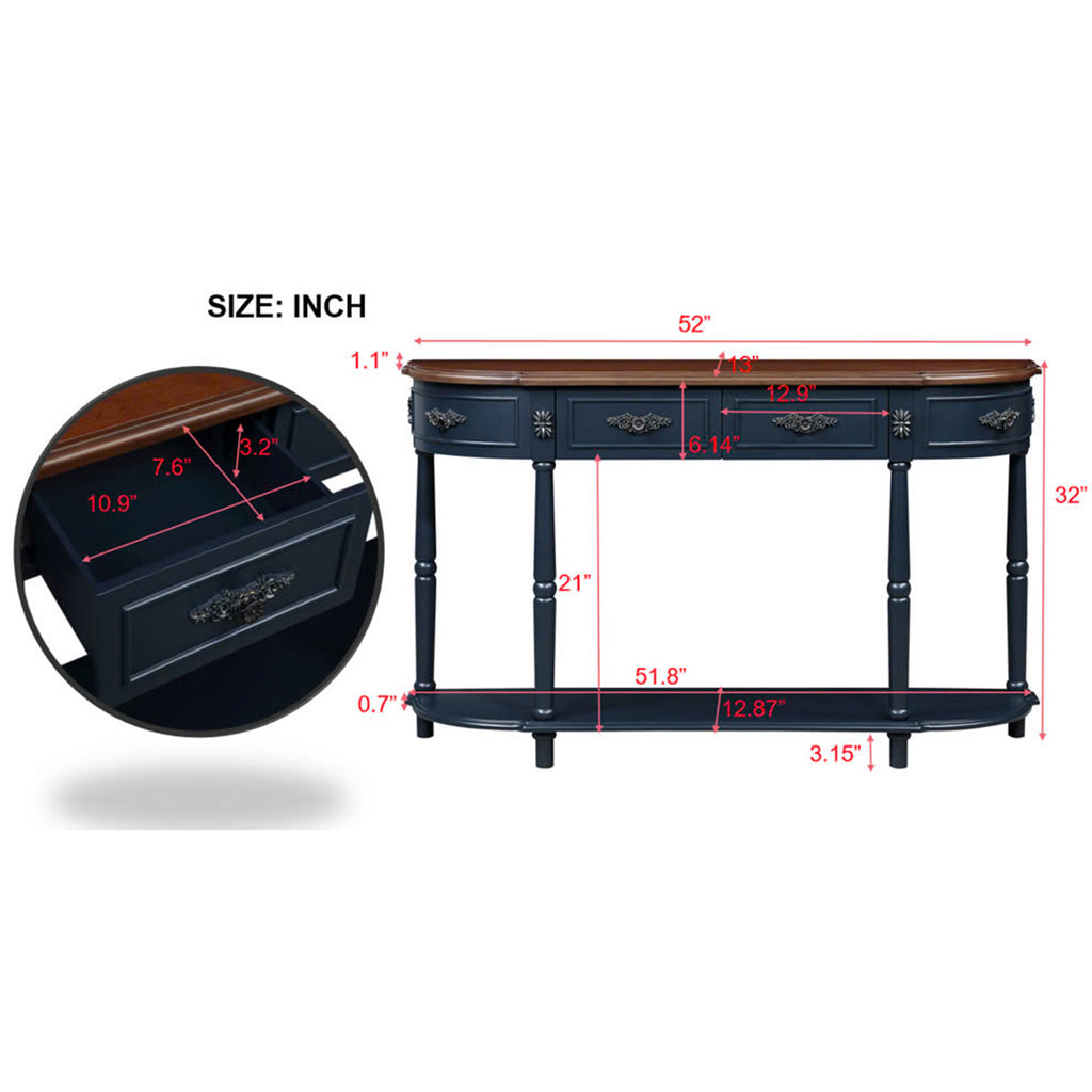 • 【Retro Style Console Table】:Our console table is retro style. The 4 Roman legs and the intricate carvings on the drawers give this table a classical-elegant charm that adds a touch of luxury to your room. You can use it as a commodity shelf to support daily essentials. You can also use it as a sofa table or a graceful book case to store books or magazines in hallway, entryway, bedroom, living room.