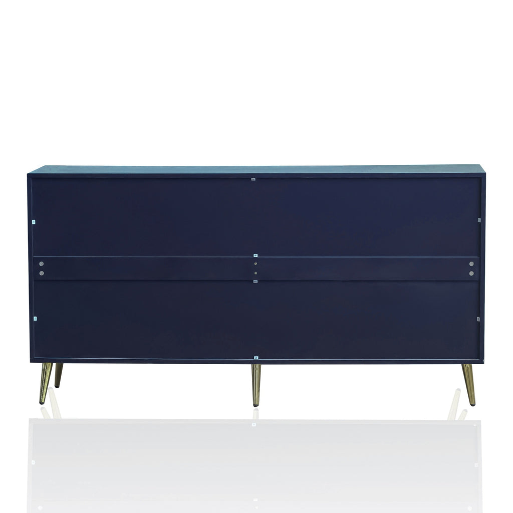 - Featuring matte navy blue lacquered finish matching with shining golden door knobs and legs, this cabinet will add a stunning look to your places.