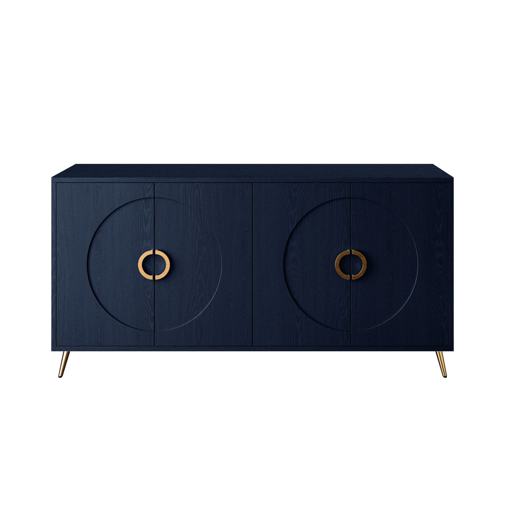 Modern Navy Blue 4 Door Wooden Cabinet Sideboard Buffet Server Cabinet Storage Cabinet